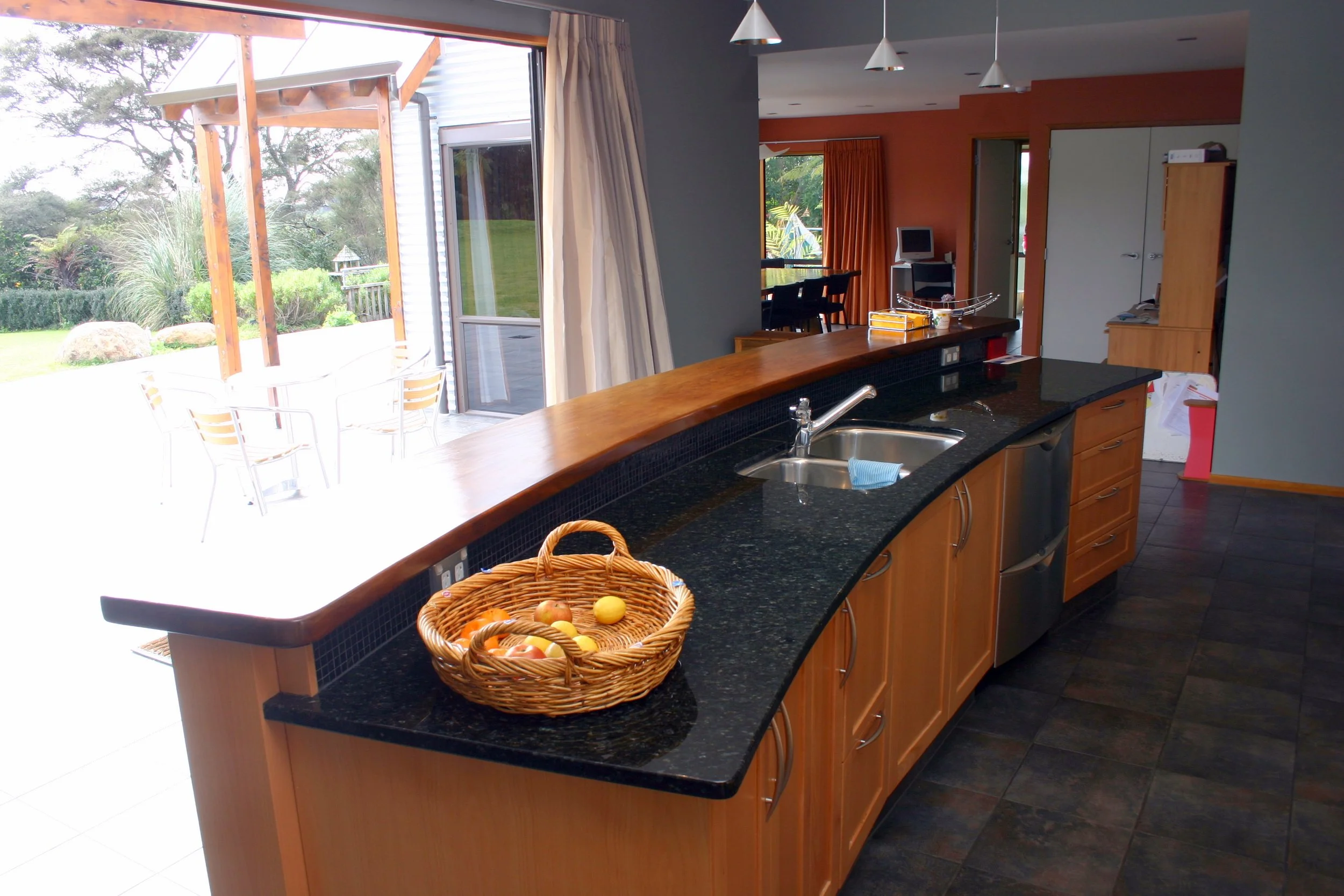 Making it look unified was a prerequisite as well as being low maintenance. Separation of living spaces was desired in this busy family home while not feeling disjointed. Excellent indoor outdoor flow was essential. The new kitchen formed the link between the old and the new. It also opens out to a large outdoor entertainment space over looking the estuary.