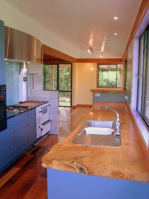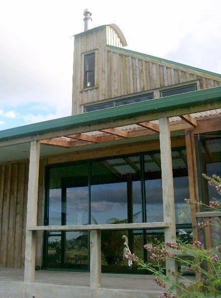 Built by Andrew and Petra Stephenson for their family of five. The house was the first they built for themselves that incorporated permaculture principals. The design received an excellent rating under the Branz Green Home Scheme and the family saved a considerable amount in running and heating costs. The house incorporated locally milled macrocarpa for framing and cladding and recycled aluminium windows and matai flooring. The house was also the first to have an internal composting toilet approved in the Western Bay of Plenty District.