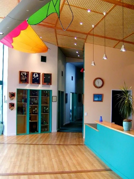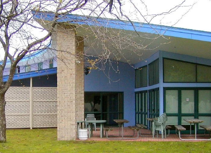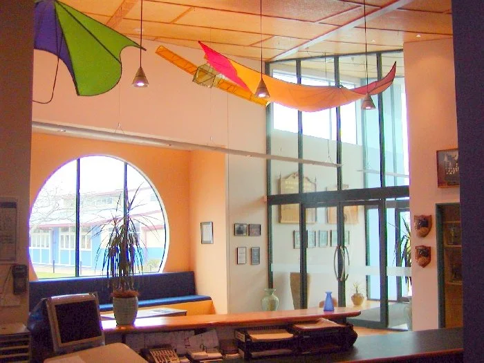 The iconic entry canopy sets it apart from other schools. High levels of noise from the adjacent railway and main road were alleviated with the use of precast concrete panels sheltering north outdoors spaces leading out from the staff room. Tight area codes and a limited budget were adhered to culminating to meet a strict deadline. The end result won two awards-the NZIA Branch award for Architecture and the Resene Colour award.