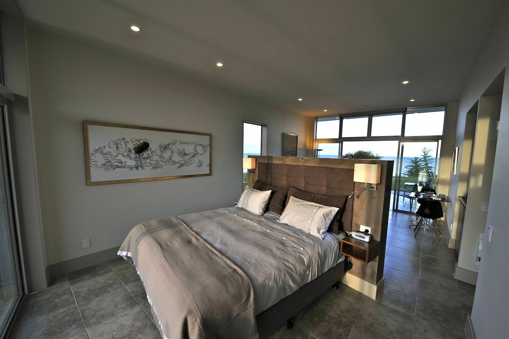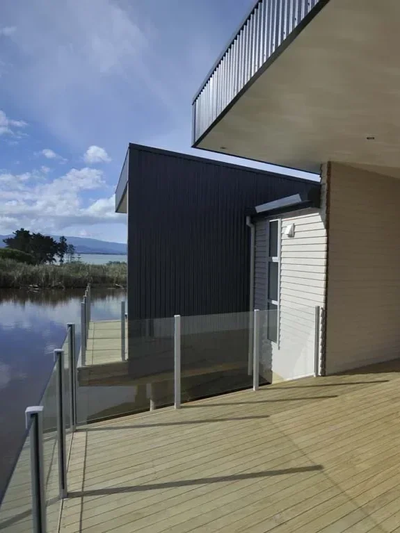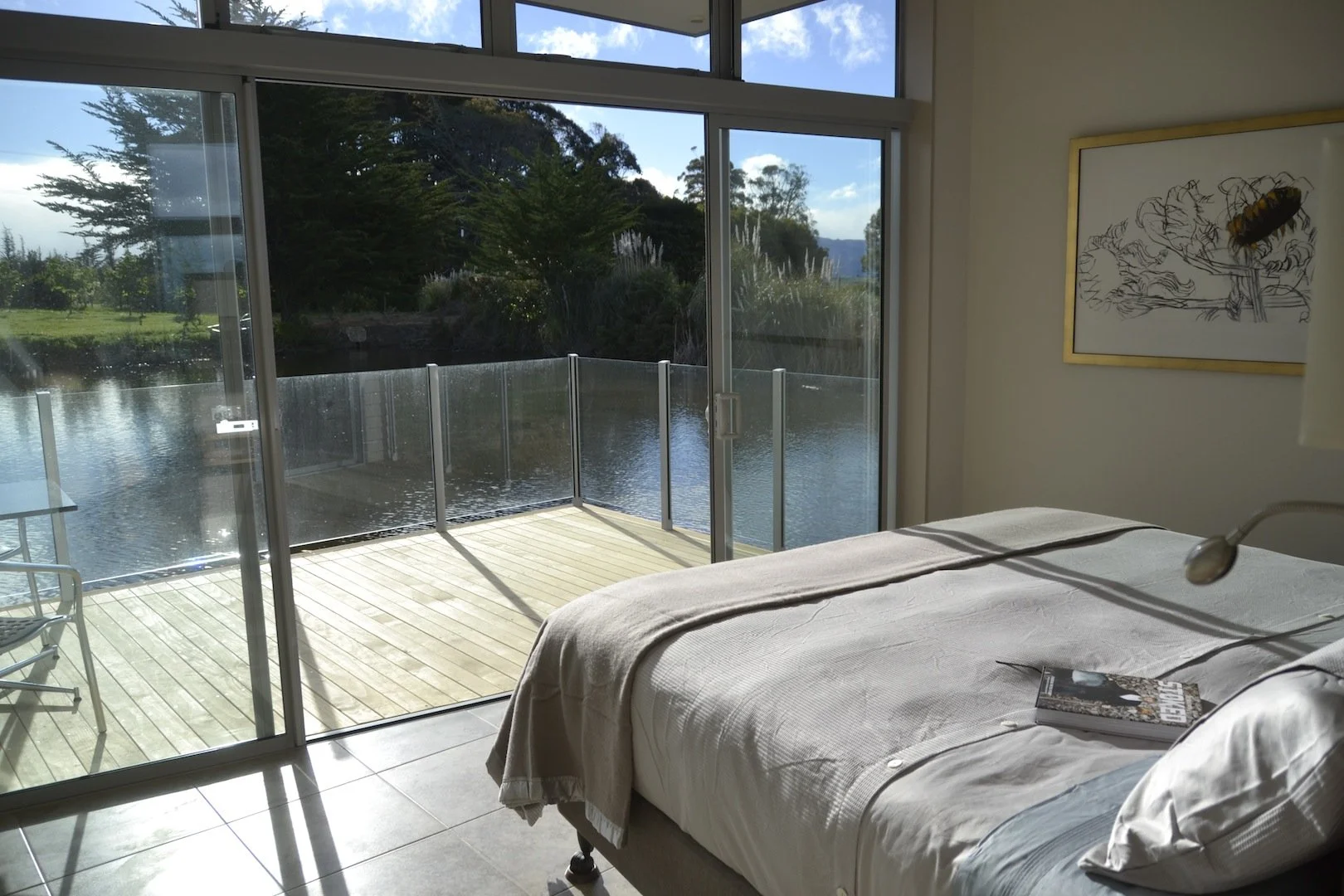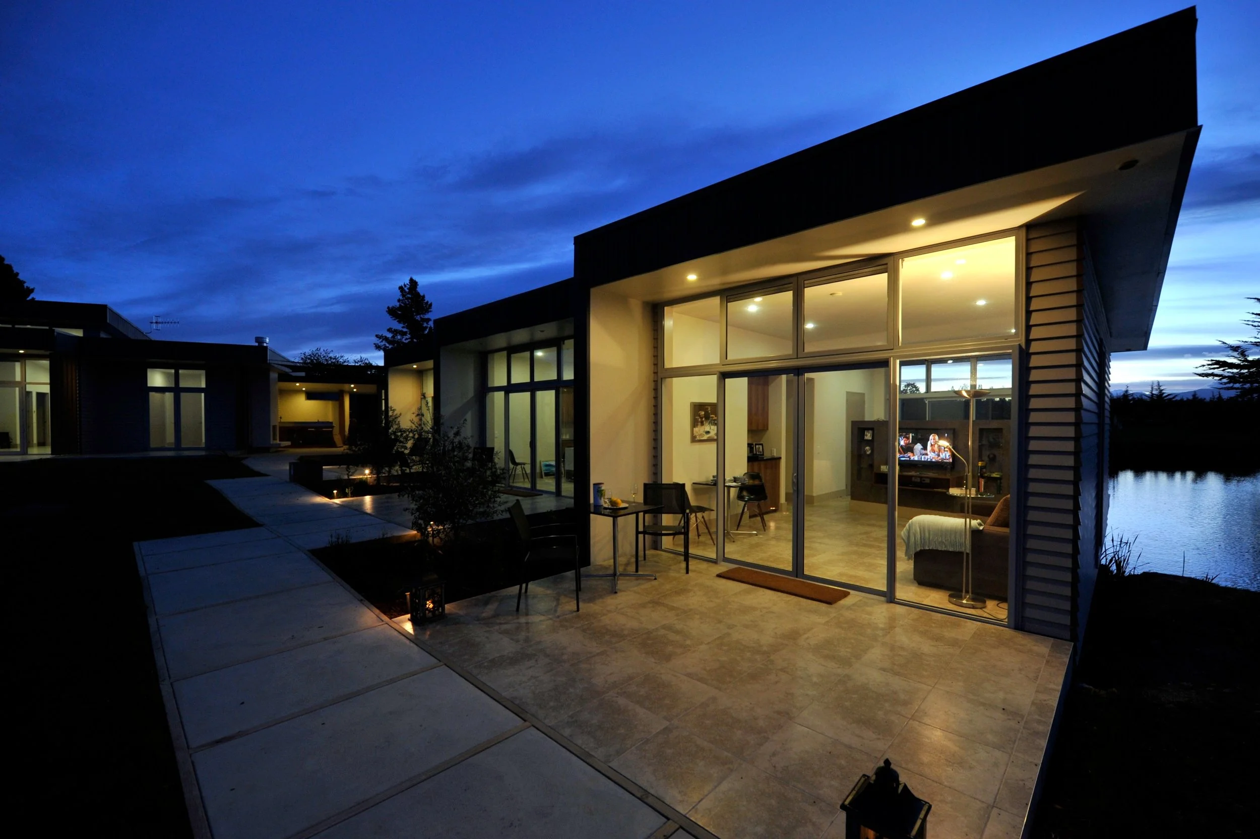 The brief was for three bed and breakfast units with an adjacent manager's residence connected by an enclosed deck. The site is north sloping and set among an olive grove with 180 degree views of Tasman Bay, Mariri Estuary and the Mount Arthur Range. There is also a pond surrounded by bull rushes and toitoi. The clients wanted a modern building that took advantage of all that the site had to offer. They also wanted rooms to cantilever over the pond as they look towards the mountains. The concept idea for the B & B units was of a series of modern boat sheds. They are separated from each other by smaller inserts housing the ablutions. The manager's residence is distinct from the units but ties in by using similar materials and design features. The connecting communal deck space acts as a transition zone between the two building types with the laundry/office building acting as the pivot.