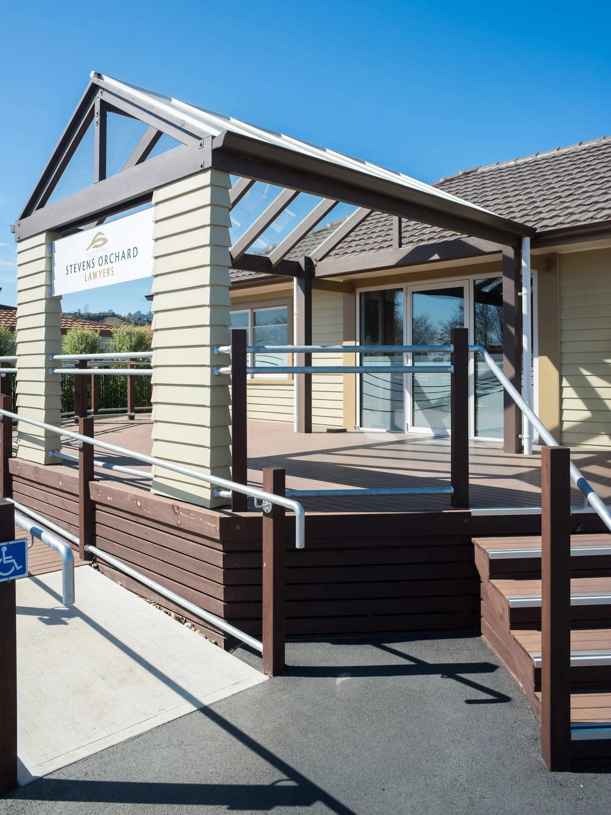 The existing house was too small so an extension was added to accommodate extra offices. The existing house was also renovated and refurbished into smart, professional looking premises. A new entry was designed in a style sympathetic to the existing house, that incorporated signage, a covered awning and an accessible ramp.